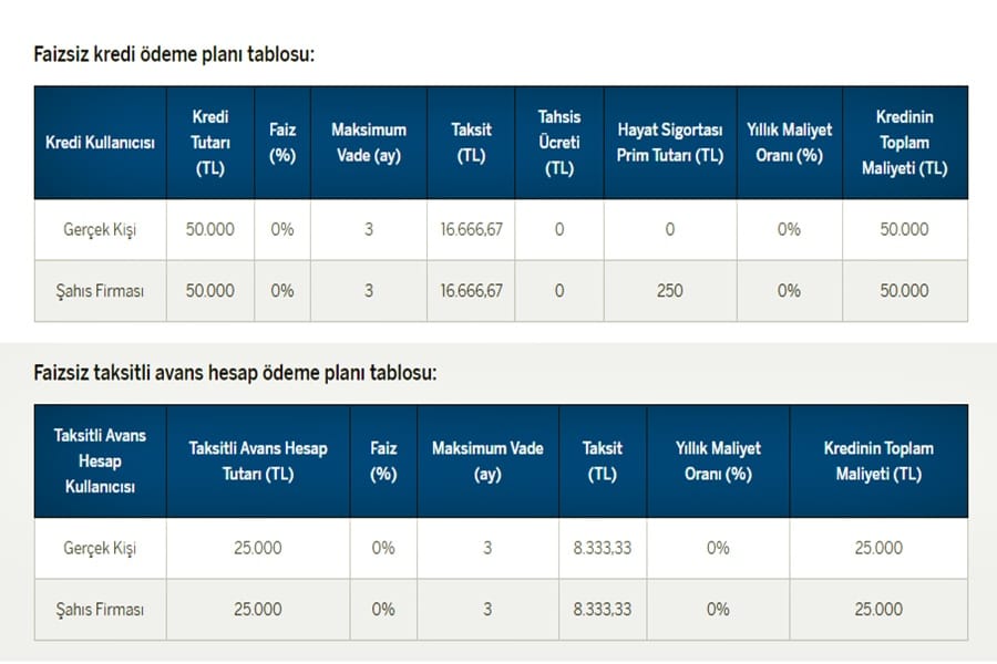 1. Faizsiz İhtiyaç Kredisi (50.000 TL):