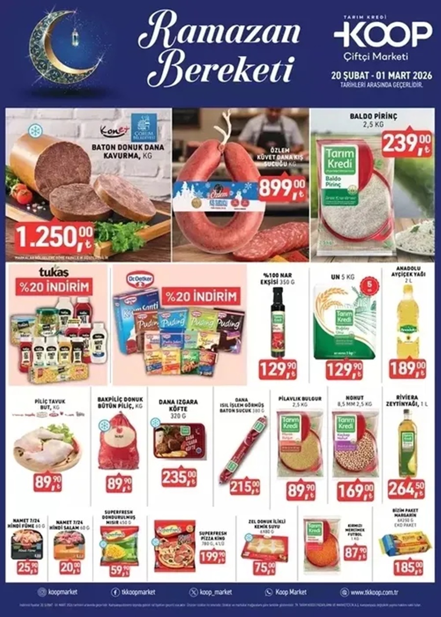 Tarım Kredi Kooperatif Marketleri’nin 19 Şubat – 3 Mart 2026 tarihleri arasında geçerli aktüel kampanyasında et ve şarküteri ürünlerinden temel gıdaya, süt ve kahvaltılıklardan temizlik malzemeleri ile elektronik eşyalara kadar yüzlerce üründe güncel fiyatlar ve dikkat çeken indirimler tüketicilerle buluşuyor.