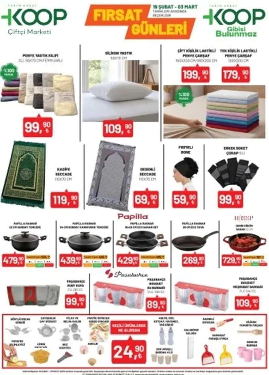 Tarım Kredi Kooperatif Marketleri tarafından 19 Şubat – 3 Mart 2026 tarihleri arasında geçerli aktüel kampanya kapsamında birçok kategoride indirimli ürün listesi yayımlandı. Et ve şarküteri grubundan temel gıdaya, süt ve kahvaltılıklardan atıştırmalıklara, içeceklerden temizlik ve kişisel bakım ürünlerine, elektronik ve ev gereçlerine kadar geniş bir ürün yelpazesi tüketicilere sunuldu.